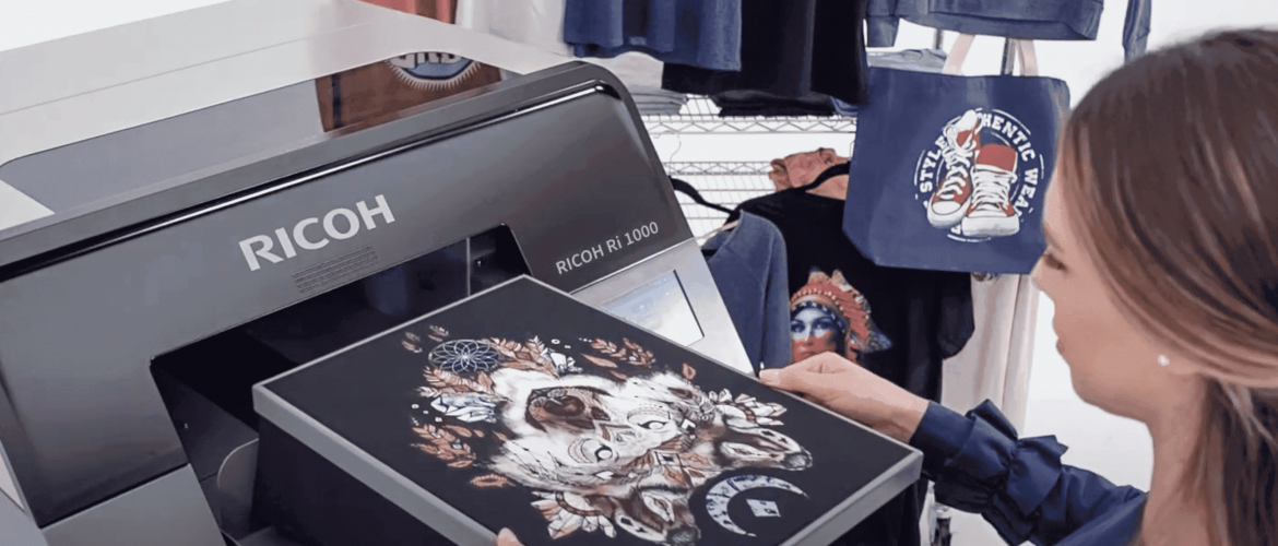 A impressora Ri 1000 Direct to Garment – DTG proporciona uma solução de impressão têxtil de produção rápida e flexível com uma qualidade de imagem excecional.